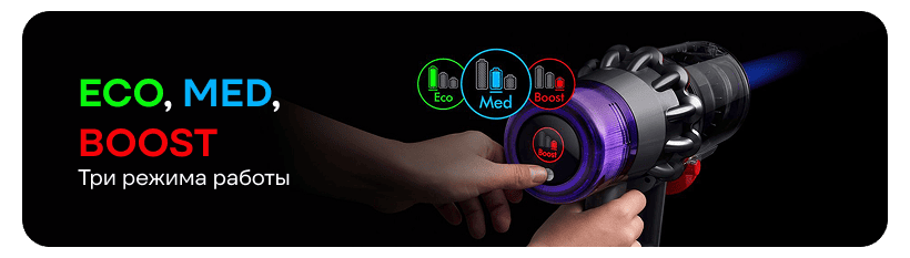 Понимая, что каждая уборка уникальна, Dyson V11 Extra предлагает три различных режима мощности. Вы можете легко переключаться между этими режимами в зависимости от задачи. Используйте низкий режим для быстрой уборки пятен на твердых полах, средний режим для повседневной уборки и режим Boost для глубокой чистки ковров и ковровых покрытий. Такая гибкость гарантирует, что вы будете использовать мощность, подходящую для конкретной поверхности, а также эффективно управлять зарядом аккумулятора.