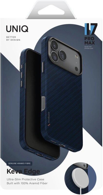 Чехол Uniq Keva Edge Aramid Case MagSafe для iPhone 17 Pro Max, Blue (IP6.9P(2025)-KEVAEDMTBLU)