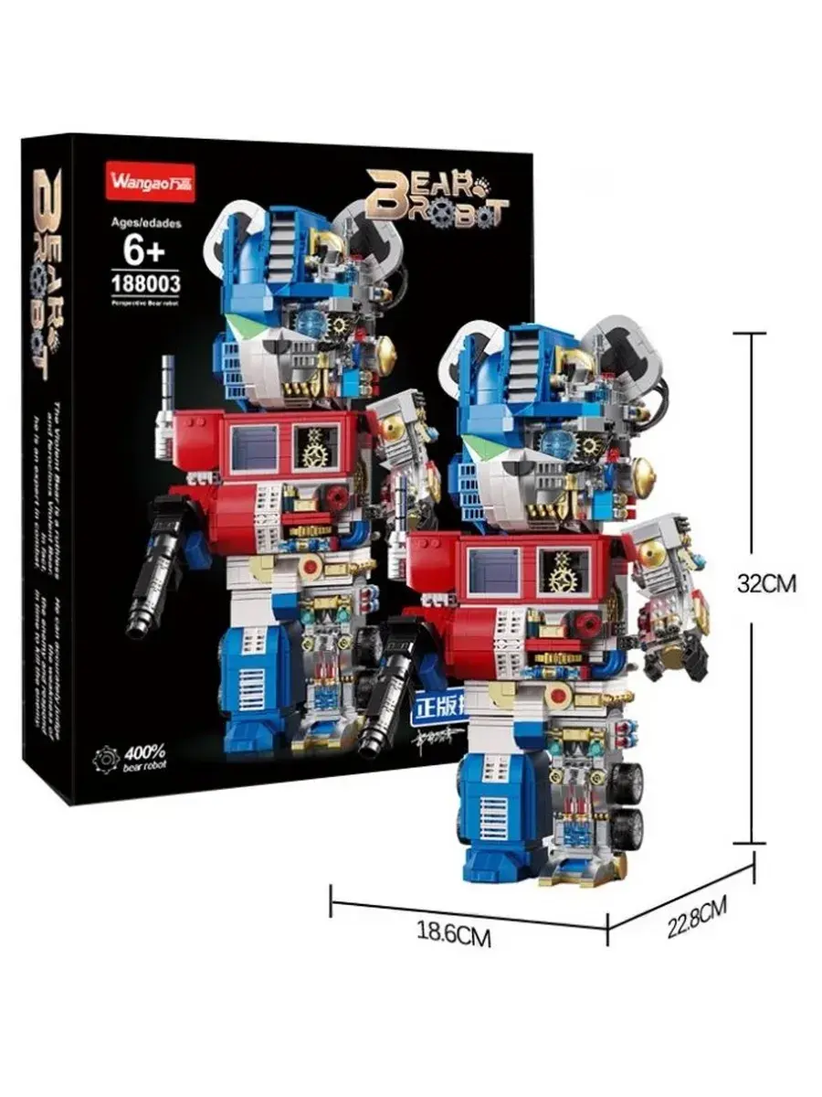 Конструктор Wangao BearBrick 188003. Optimus Prime - это исключительный строительный набор, который обещает часы творчества и веселья. Этот набор, состоящий из 1807 высококачественных пластиковых деталей, предназначен для детей в возрасте от 6 лет и старше и предлагает увлекательную игру, которая развивает навыки решения проблем и внимание к деталям. Полностью собранная модель имеет размеры 320x228x186 мм, что позволяет создать эффектную, полностью реализованную версию Оптимуса Прайма, которая очарует любого поклонника культового персонажа. Купить конструктор Wangao BearBrick 188003: Оптимус Прайм можно у нас в iPolly с доставкой по городу или же с возможностью забрать свой заказ самостоятельно.