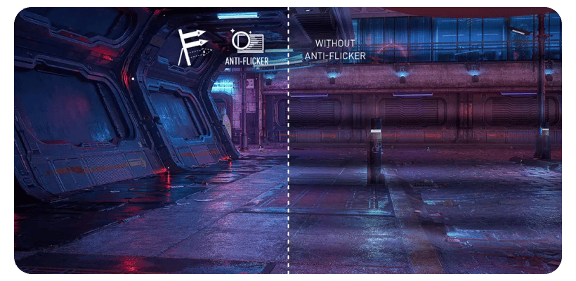 Многочасовые рейды не должны бить по здоровью. MSI внедрила в MAG 346CQ продвинутые технологии защиты глаз, чтобы вы чувствовали себя комфортно даже в затяжных сессиях. Система Flicker-free убирает раздражающее мерцание, а аппаратный фильтр синего света снижает нагрузку на зрение. Играйте хоть от заката до рассвета: этот продуманный дизайн избавляет от типичной усталости, позволяя сохранять концентрацию и четкость взгляда.