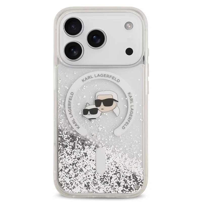 Чехол Lagerfeld для iPhone 17 Pro Max Liquid Glitter NFT Karl & Choup Heads Hard (MagSafe), Transparent (KLHMP17XLGKCSGH)