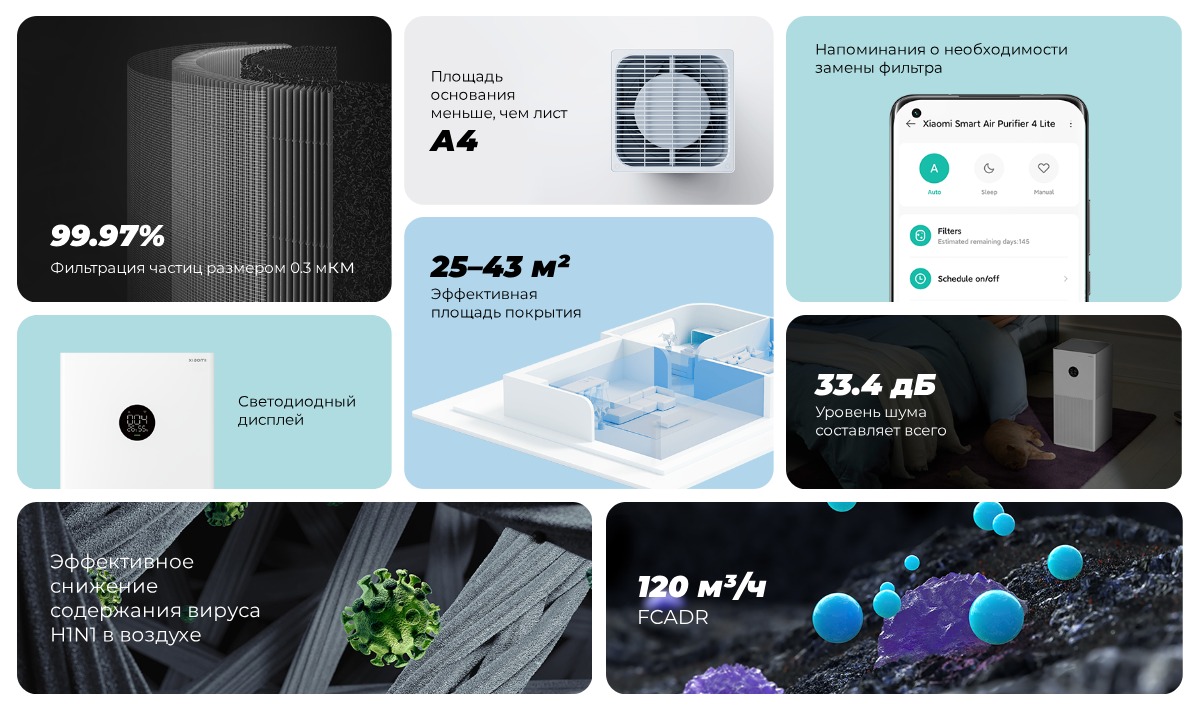 Никому не нравится, когда в доме витают неприятные запахи. Очиститель воздуха Mijia 4 Lite решает эту проблему на корню благодаря усовершенствованному фильтру с активированным углем, который по скорости поглощения в 1.8 раза превосходит стандартные фильтры. Это означает, что он может эффективно удалять вредные газы, такие как ЛОС (летучие органические соединения), и устранять запахи от приготовления пищи, домашних животных или дыма. С этим очистителем вы можете выйти в свет, зная, что по возвращении в вашем доме будет пахнуть свежестью и чистотой.