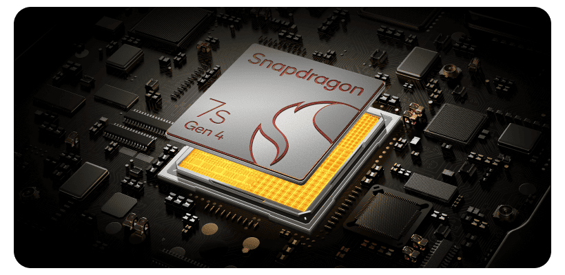 В основе всего опыта лежит мощная мобильная платформа Snapdragon 7s Gen 4. Этот чипсет обеспечивает высокую производительность, эффективно обрабатывая требовательные приложения, многозадачность и игры с интенсивной графикой. Он гарантирует, что ультраплавное, полностью иммерсивное развлечение, обещанное аппаратным обеспечением, будет предоставлено без задержек и лагов, обеспечивая стабильно мощный и отзывчивый пользовательский опыт.