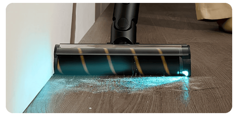 Добиться чистоты вдоль стен и плинтусов может быть сложной задачей. Dreame R10S Pro решает эту проблему с помощью технологии Clean-to-Edge™. Она оснащена мягкой роликовой щеткой, расположенной всего в 7 миллиметрах от края пылесоса. Этот минимальный зазор позволяет щетке сметать мусор прямо с плинтусов и углов в канал всасывания. Результатом является чистая линия вдоль краев ваших комнат, что устраняет необходимость в последующей ручной уборке.