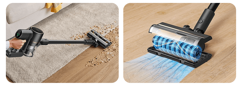 В домах часто используются различные типы напольных покрытий, от твердых поверхностей до мягких ковров. R10S Pro оснащен сменной многофункциональной щеткой, которая адаптируется к различным условиям. Его конструкция включает в себя регулируемое переднее отверстие, которое плавно собирает крупный мусор, не забиваясь. Кроме того, щетка имеет V-образные щетинки, которые встряхивают и поднимают пыль глубоко из волокон ковра, при этом оставаясь достаточно мягкими для твердых полов. Такая универсальность обеспечивает оптимальную производительность на всех поверхностях в вашем доме.