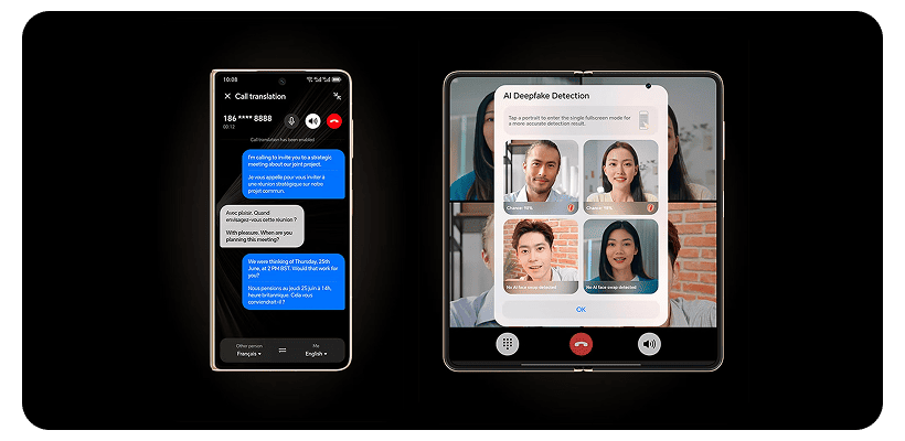 HONOR Magic V5 открывает новые возможности для общения - даже на разных языках. Благодаря передовому искусственному интеллекту телефон может автоматически переводить разговоры в режиме реального времени, так что вы легко поймете собеседника, говорящего на другом языке. Достаточно принять звонок, и функция обеспечит понятную транскрипцию и перевод на экране. Звоните ли вы за границу, сотрудничаете с международной командой или путешествуете, HONOR Magic V5 поможет вам преодолеть языковые барьеры плавно и без стресса. С ростом количества цифрового манипулируемого контента HONOR Magic V5 предлагает интеллектуальную функцию обнаружения дипфейк-видео и фотографий, основанную на искусственном интеллекте. Устройство анализирует подозрительный контент в режиме реального времени и предупреждает вас, если обнаруживает следы манипуляции или синтетического создания. Эта технология помогает защитить вашу конфиденциальность, доверие и безопасность - будь то при просмотре Интернета, получении сообщений или обмене контентом. С HONOR Magic V5 вы контролируете, что является реальным, а что нет.