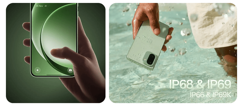 Смартфон привлекает элегантным дизайном с закругленными углами и минимальными рамками вокруг дисплея. Отличным преимуществом, которое оценят все пользователи, является повышенная прочность телефона с сертификацией IP66, IP68, IP69 и IP69K. Поэтому OnePlus 15R не повредит ни пыль, ни брызги воды, ни погружение в воду.
