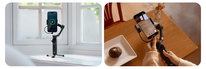 Гибкость стабилизатора открывает простор для фантазии. Он вращается на 360 градусов по горизонтали, позволяя снимать плавные панорамы и видео с нестандартных ракурсов. В паре с интеллектуальным отслеживанием устройство плавно следует за движущимися объектами, помогая создавать кадры профессионального уровня.