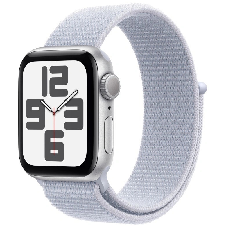 Apple Watch SE 2024, 40 мм, алюминий цвета "Серебро", Blue Cloud Sport Loop, S/M (MXEE3)