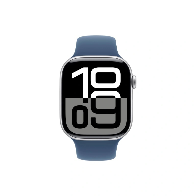 Apple Watch Series 10, 46 мм, алюминий цвет «серебристый», спортивный ремешок цвета "Denim", размер M/L (MWWM3)