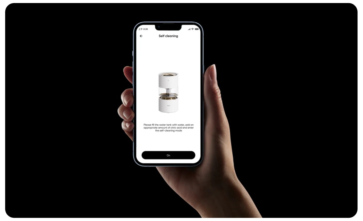 Для максимального удобства в увлажнителе Rainforest предусмотрен режим самоочистки. Одним нажатием кнопки на телефоне через приложение вы можете активировать функцию самоочистки, которая очистит прозрачное окно и другие компоненты без ручного вмешательства. Это избавляет вас от необходимости регулярной очистки, экономит ваше время и гарантирует, что ваш увлажнитель всегда остается гигиеничным и готовым к использованию.
